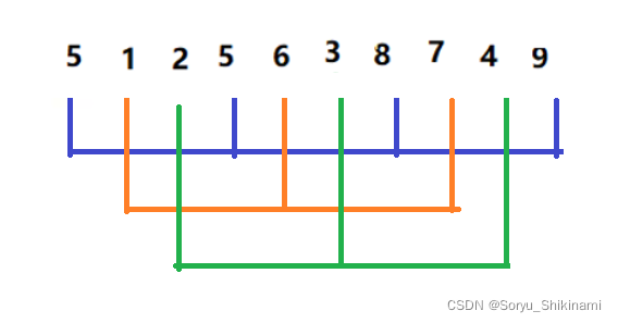 先选定一个整数,把待排序文件中所有记录分成个组,所有距离为的记录分在同一组内,并对每一组内的记录进行排序。然后,取,重复上述分组和排序的工作。当到达=1时,所有记录在统一组内排好序。