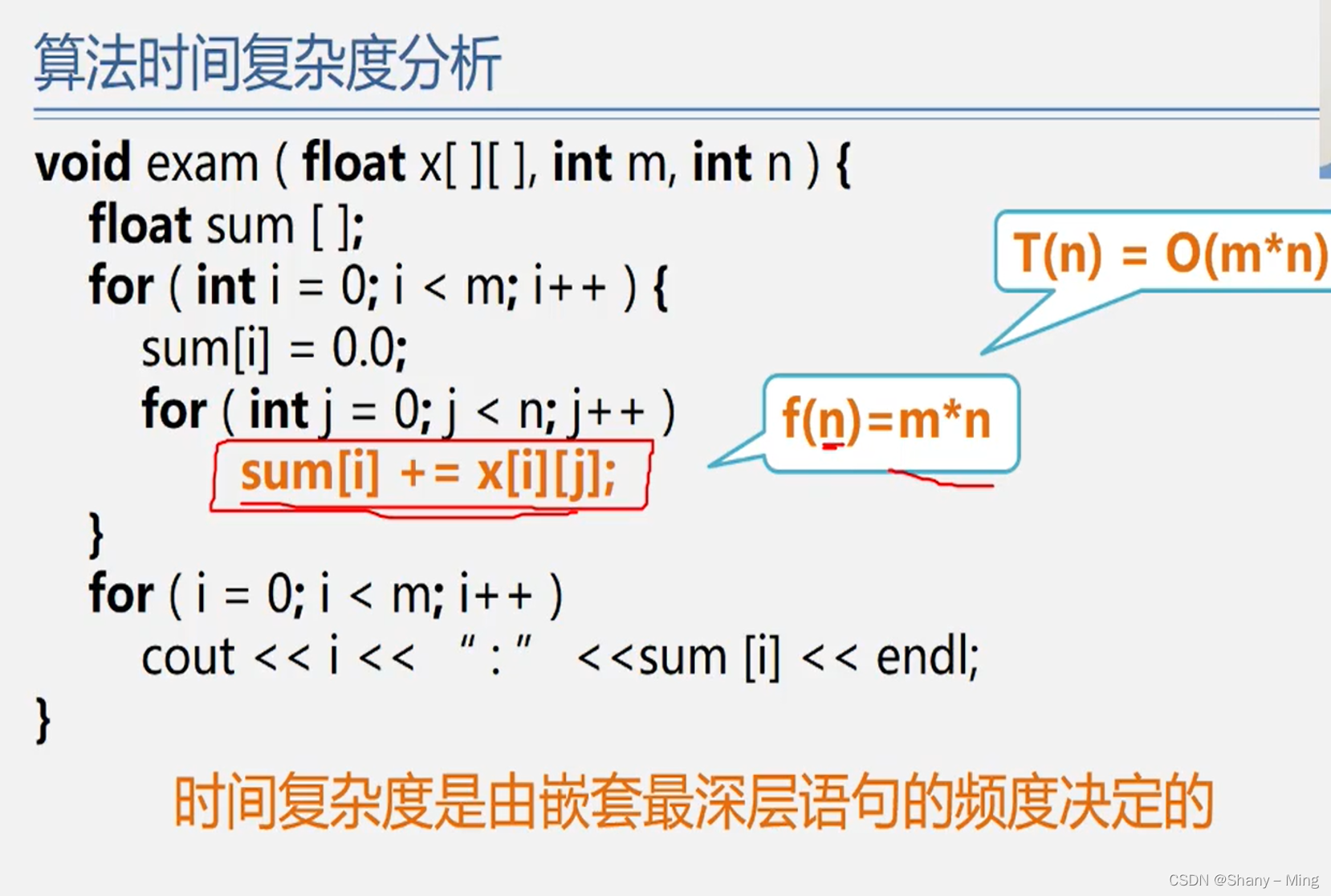 一个算法的执行时间大致上等千其所有语句执行时间的总和,而语句的执行时间则为该条语句的重复执行次数和执行一次所需时间的乘积。