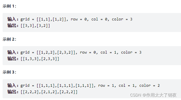 给你一个大小为 m x n 的整数矩阵 grid ,表示一个网格。另给你三个整数?row、col 和 color 。网格中的每个值表示该位置处的网格块的颜色。