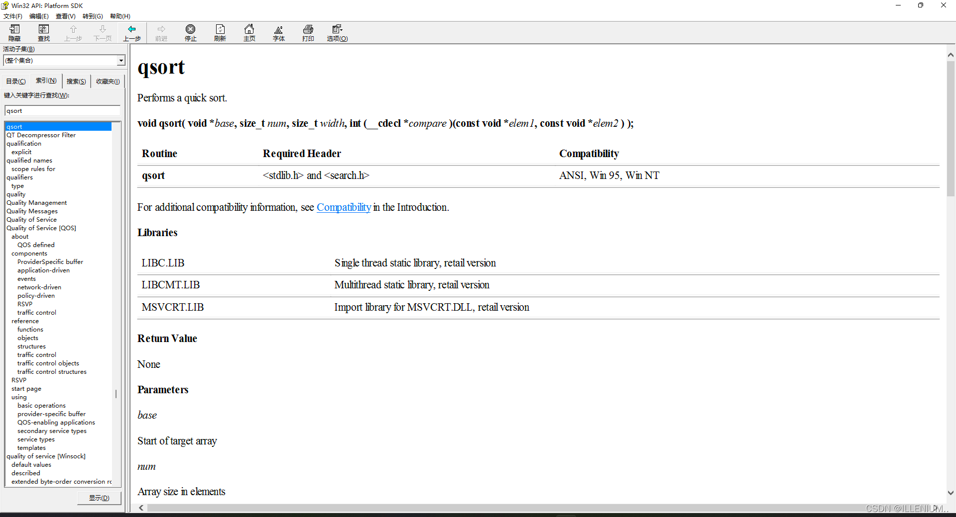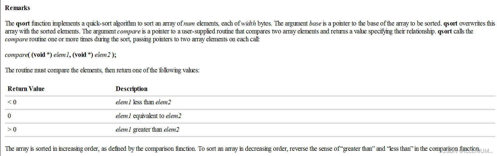 qsort函数中含有上述几个参数,base就是我们需要排序的(如数组),可以讲数组首元素作为参数,num则是待排元素的个数,width则是待排元素的大小,最后则是一个比较两个元素方法的函数,看到这里大家可能觉得很抽象,我们接下来通过几个例子帮助大家深入理解这个函数。