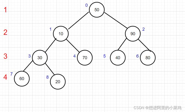 * 数组下标从0开始,若下标为i,则其左孩子下标为i*2+1;右孩子是i*2+2;