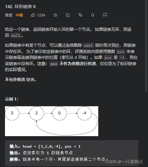 地址:142. 环形链表 II - 力扣(LeetCode) (leetcode-cn.com)