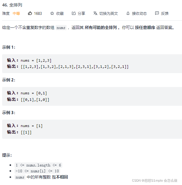 ?典型递归全排列,这里我定义了一个flag数组表示nums中当前数字有没有被使用过