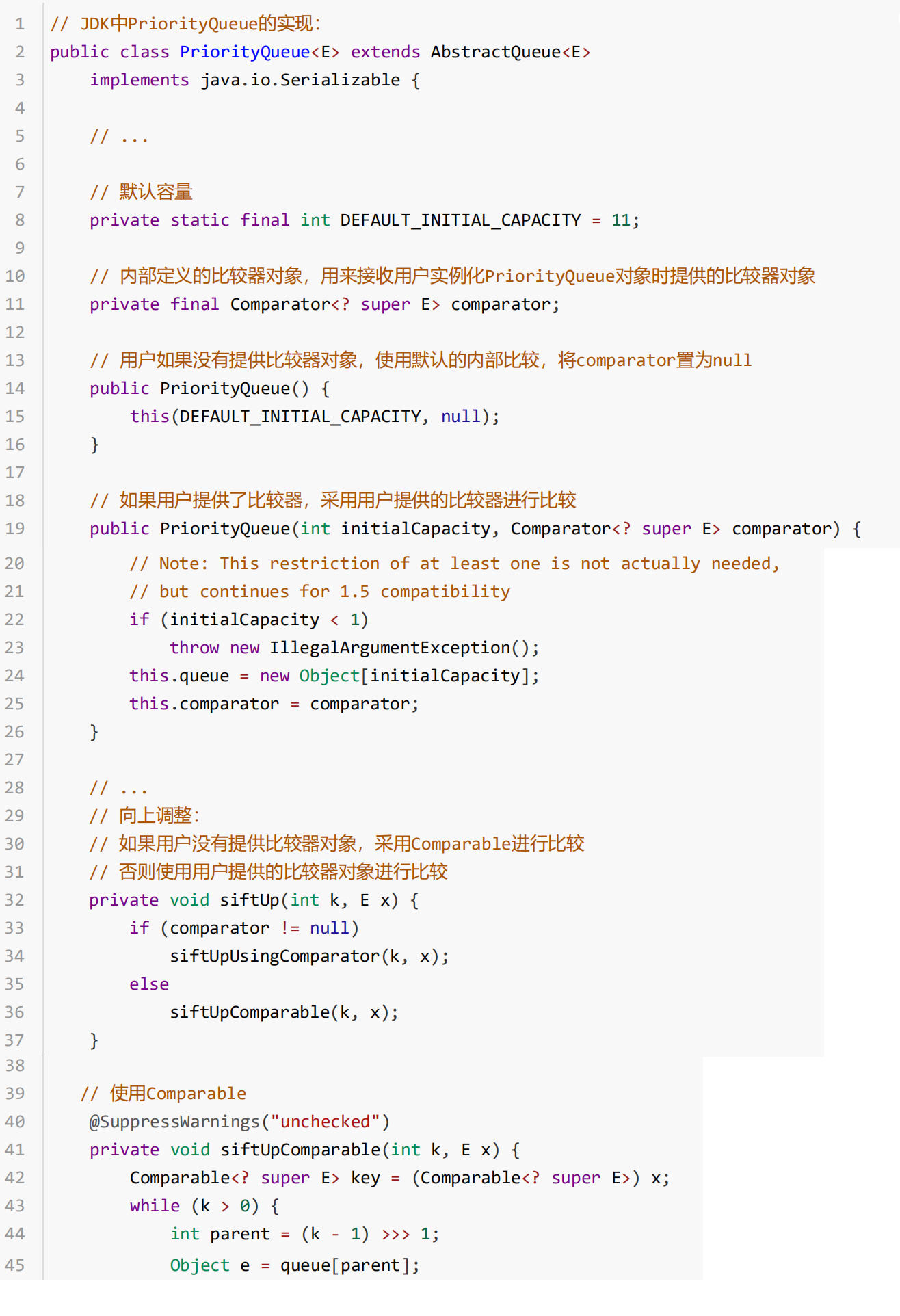 集合框架中的PriorityQueue底层使用堆结构 ,因此其内部的元素必须要能够比大小,PriorityQueue采用了:Comparble 和Comparator 两种方式。
