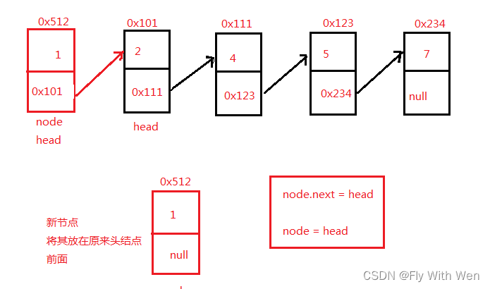 头插法就是在原来的链表前面增加一个新节点,然后再使新节点变为头节点