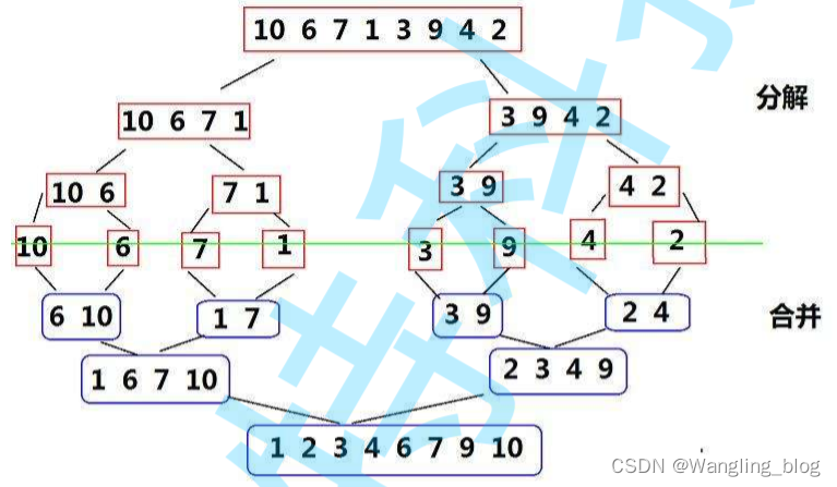 先回忆一下自顶向下归并: