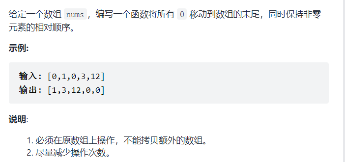 第一个for判断数组中元素不为0的话,nums[j++] = nums[i]