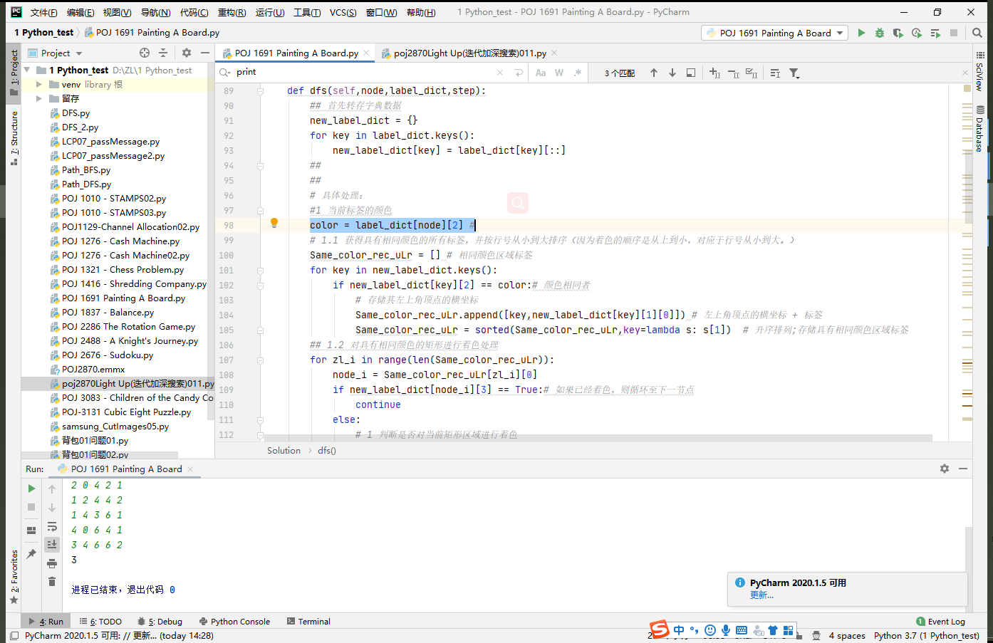 #2 检测尚未着色的区域,按行号升序排列之后,进行DFS递归处理