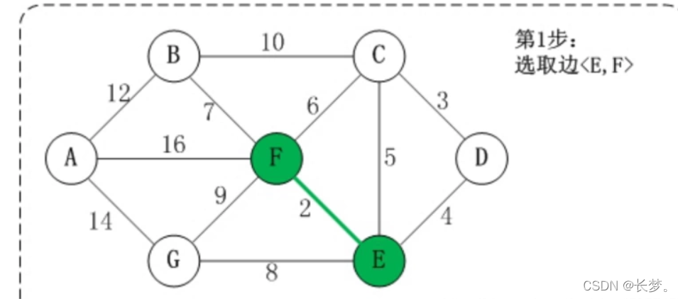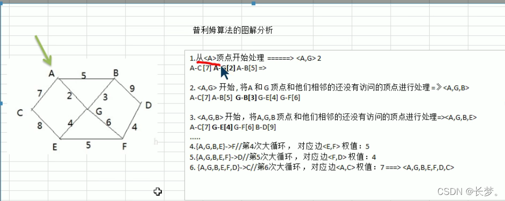 (4)重复步骤②,直到u与v相等,即所有顶点都被标记为访问过,此时D中有n-1条边