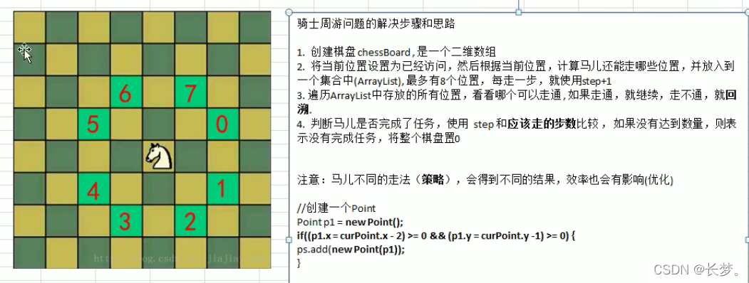 * 功能:根据当前位置(Point对象),计算马儿还能走那些位置(Point),并放入到一个集合中(ArrayList),最多8给位置