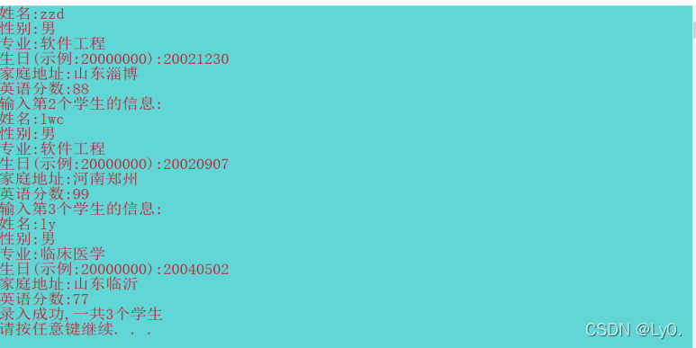 cout<<"录入成功,一共"<<count<<"个学生"<<endl;