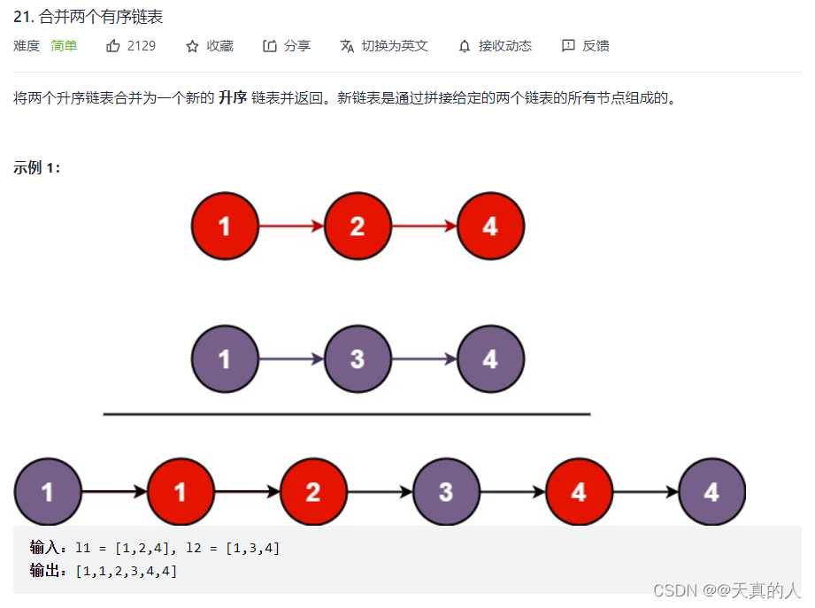 这道题最关键的一点就是当两个链表其中的一个为空时就可以直接连接另外一条链表的后面部分。