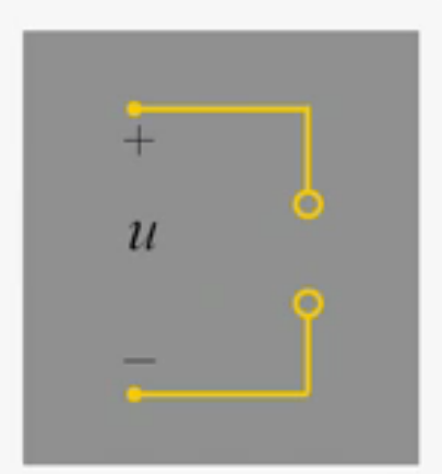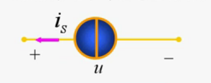 理想电压源 作用:在电路两端提供为 U 的电压。电压的大小方向是固定的,但是流过的电流可以是任意值。也就是说这个方向不一定是从正极流入,负极流出。