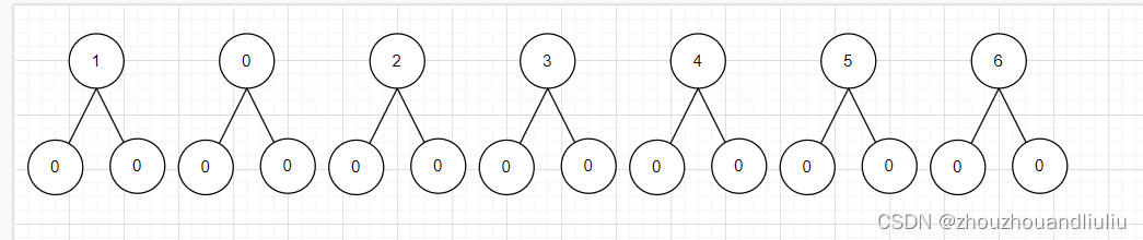这里有六个节点作为示例:圆中为数据,简单的一个节点。选定3为根节点,随机插入0 2 1 4 5 6?