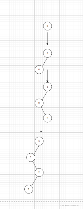 第一步,根节点3,第二步分别插入021 比三大的数跟这个类似,不做展示了。