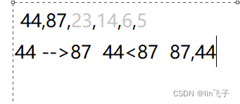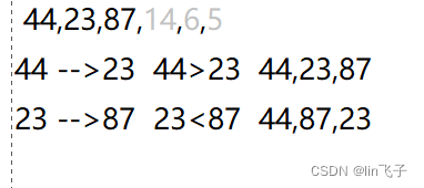 23<87? 不满足大到小条件 所以两两置换 就变成了 87,23 所以数列就成为了 44,87,23