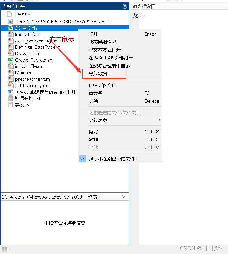 将准备好的Excel文件拖入当前工作区文件夹下,直接右击鼠标,进行导入