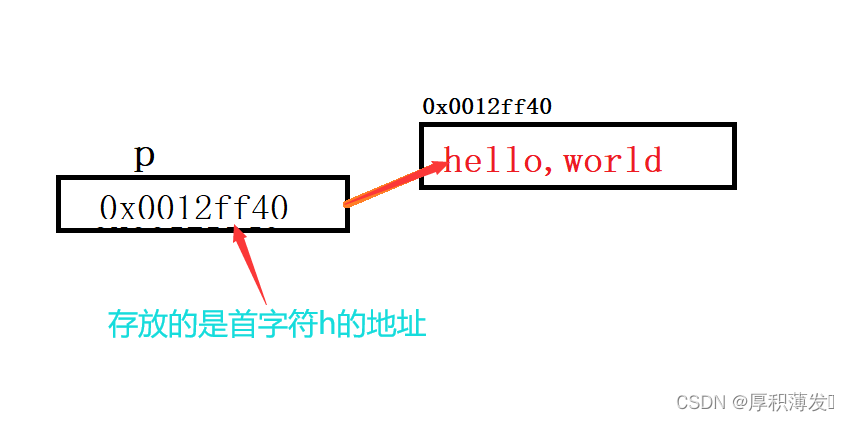 - 2):将字符w地址存放在指针变量pc中(此时pc就是存放字符的指针也叫作字符指针)