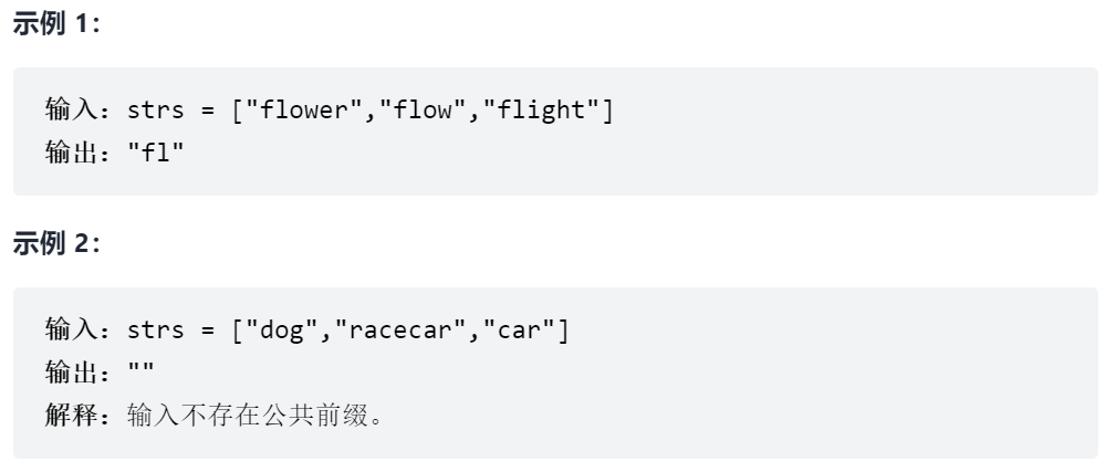 - ? ? ? ? 字符串数组只有一个字符串时,那么最长公共前缀就是这个字符串本身。