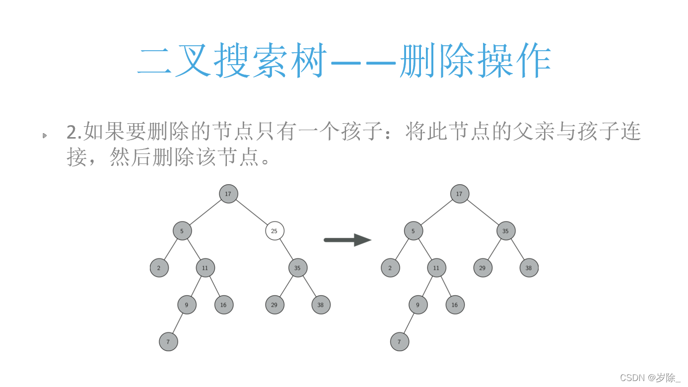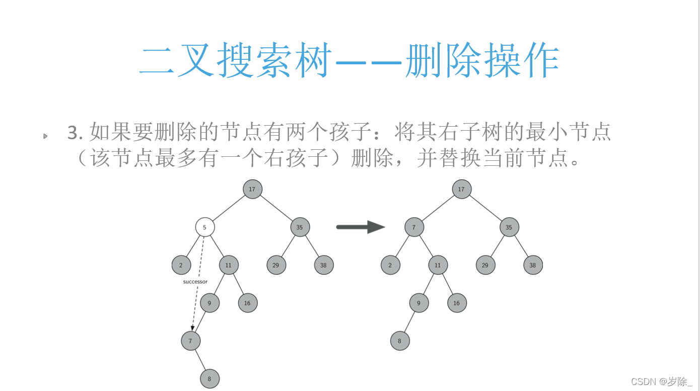 注:该删除仅代表思路,最上方二叉树刚开始时有完整代码优化。