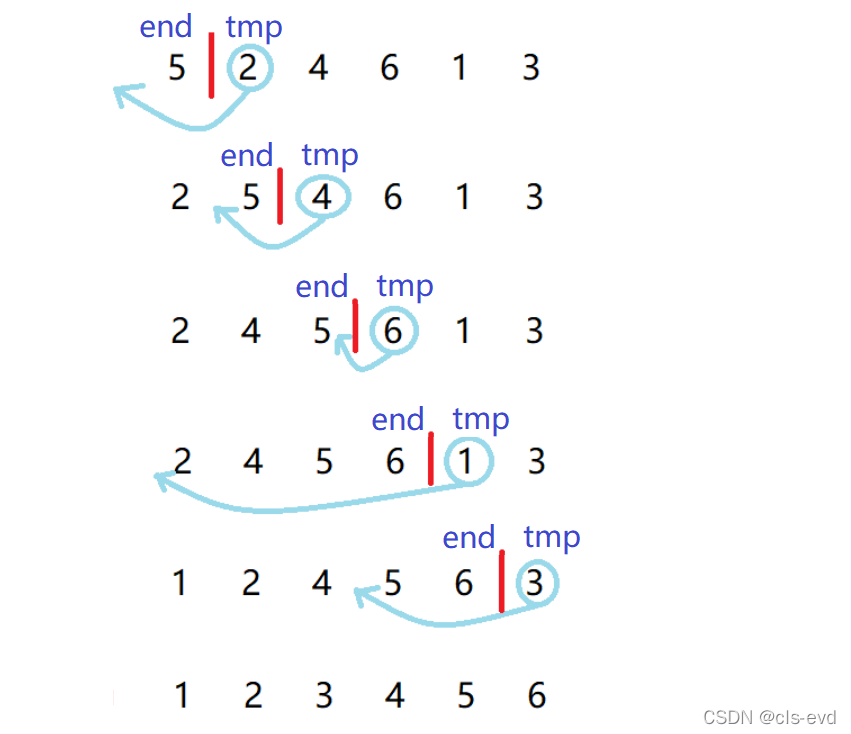 1.0单趟插入思路图: