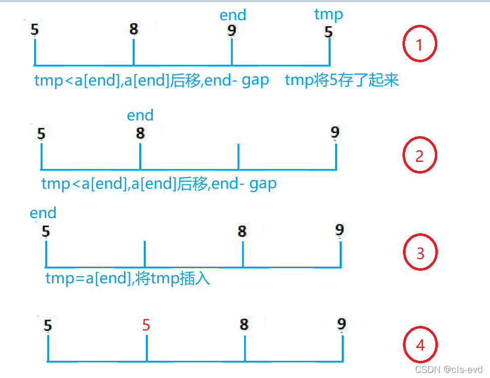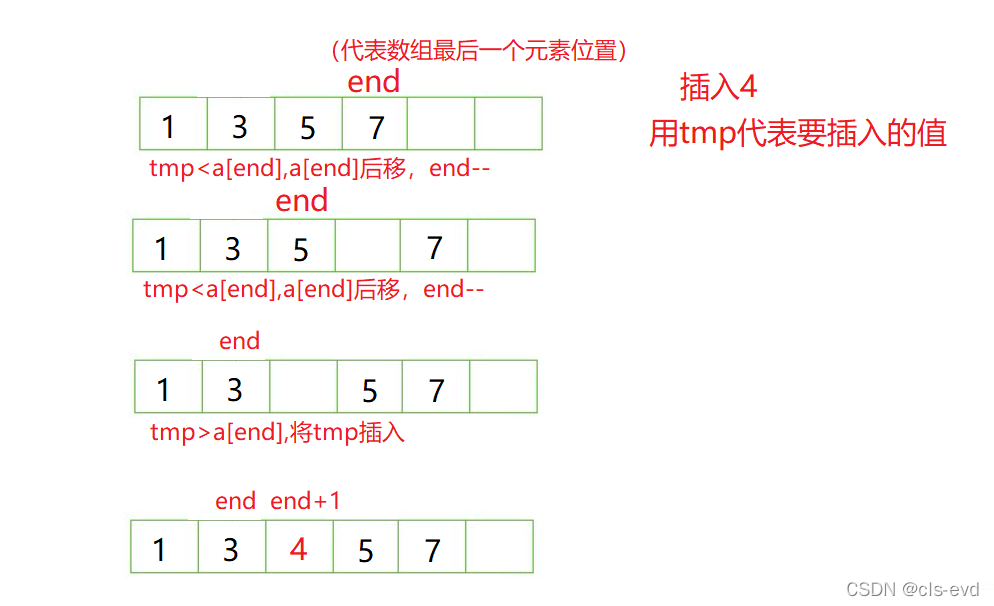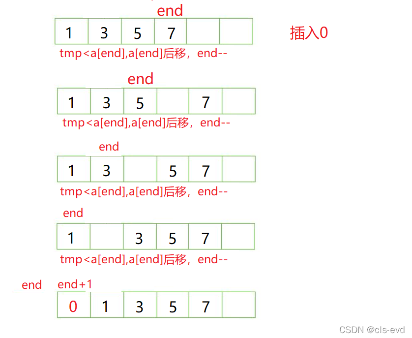 a[end + 1] = tmp; //例如上图插入0,或者tmp>a[end];