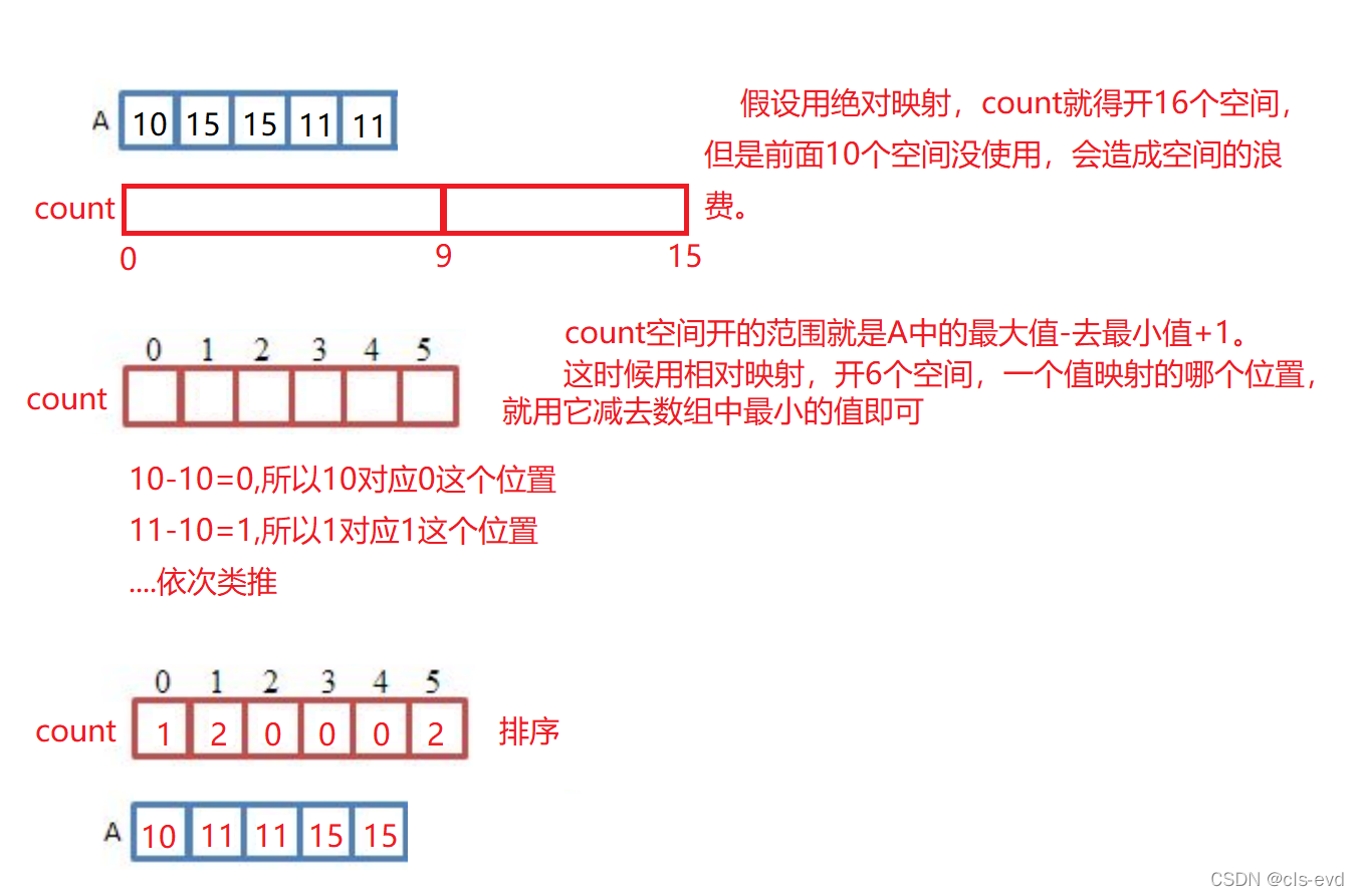 相对映射:一个值映射到哪个位置,就用它的值减去该数组中最小的值