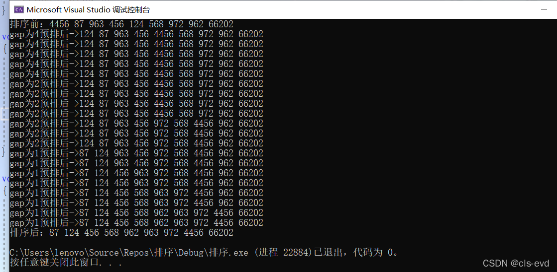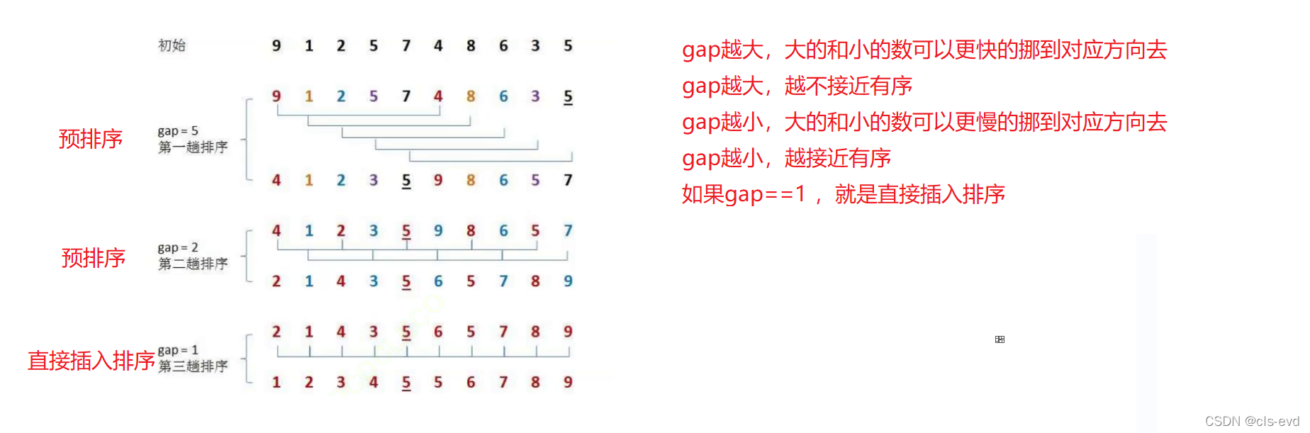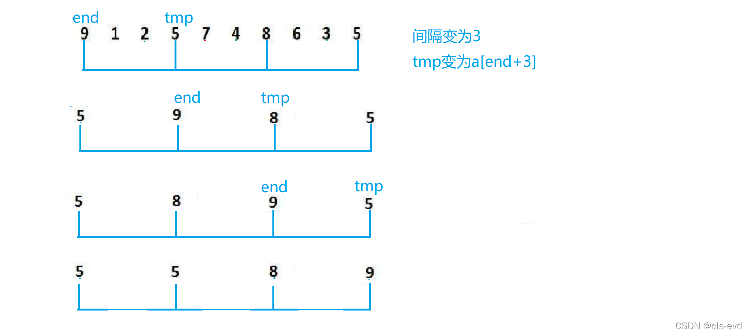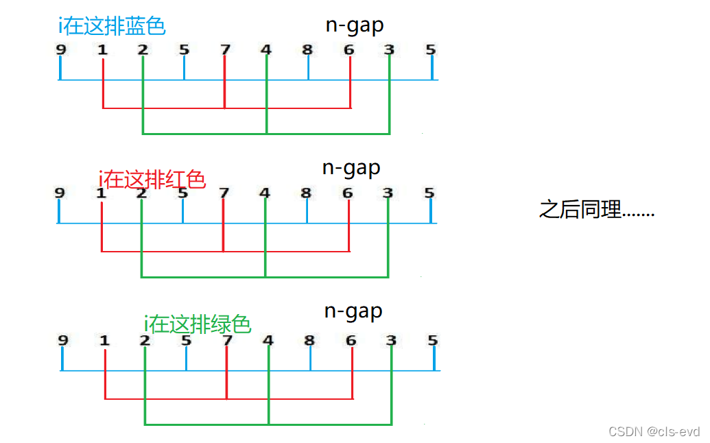 归并的是一个小组,gap就代表每个小组之间有几个数据,每次归并都是两组两组进行归并