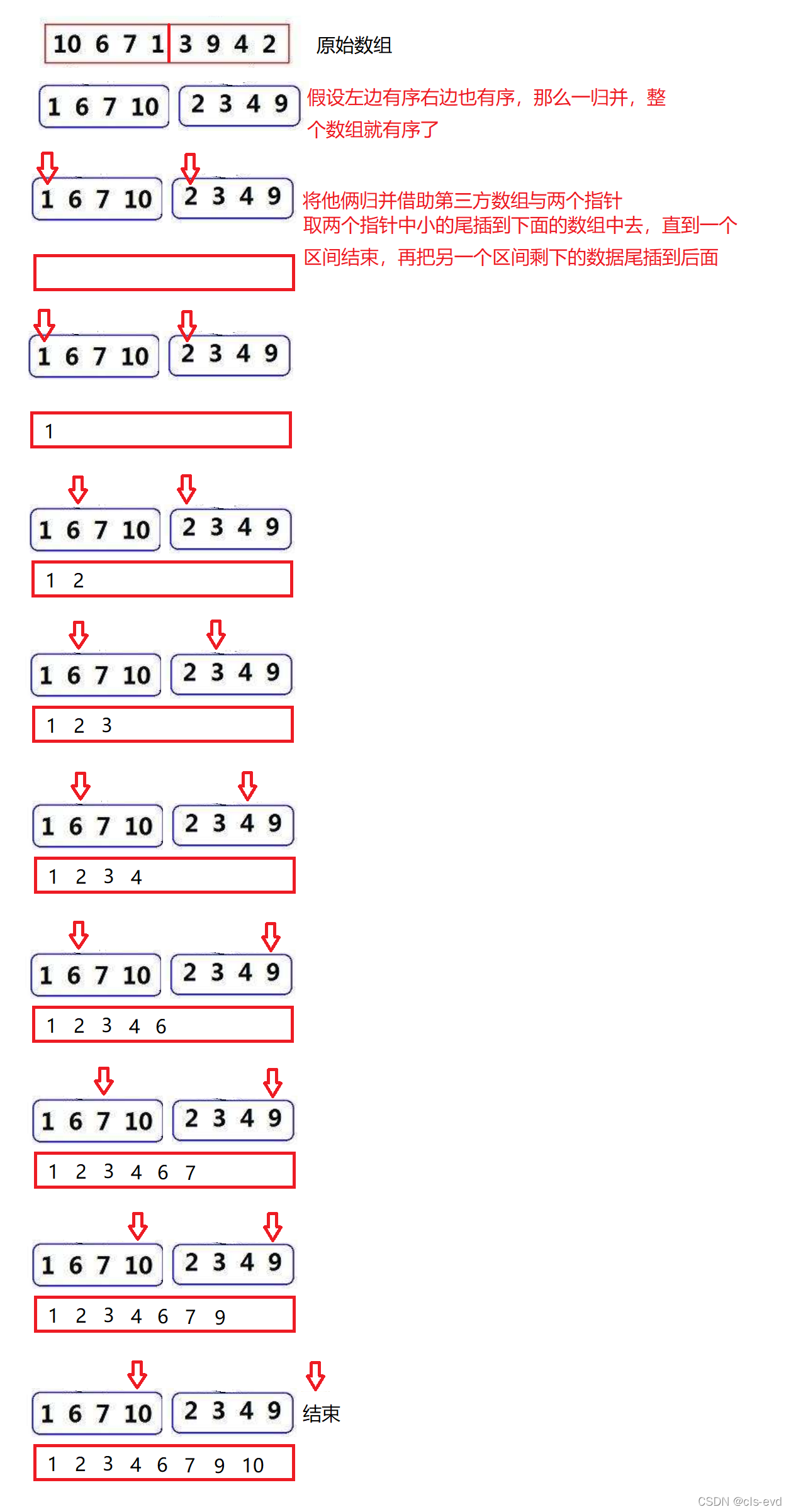 //归并完成以后拷贝回到原数组