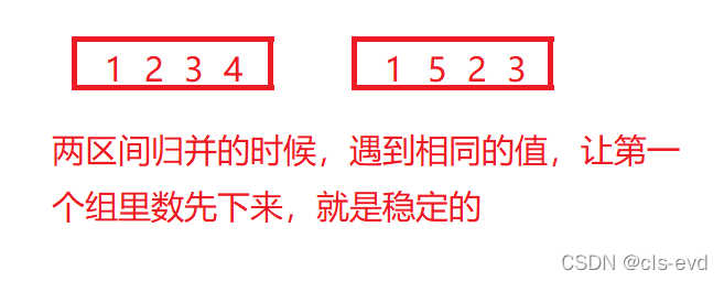 ?归并排序:稳定?两区间归并的时候,遇到相同的值,让第一个组里数先下来,就是稳定的