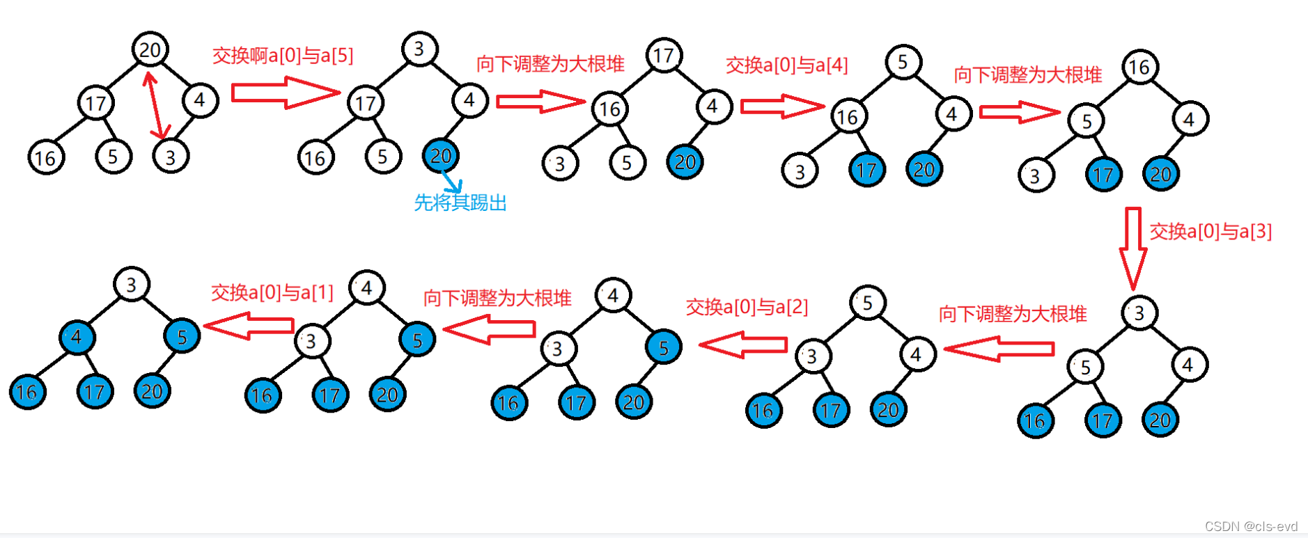 堆排序:不稳定