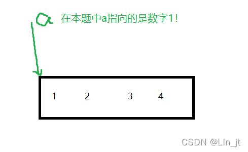 这里中sizeof仍然没有单独放置数组名,因此,数组名a仍然表示数组首元素的地址,对该地址解引用,找到的是我们的数字1,即