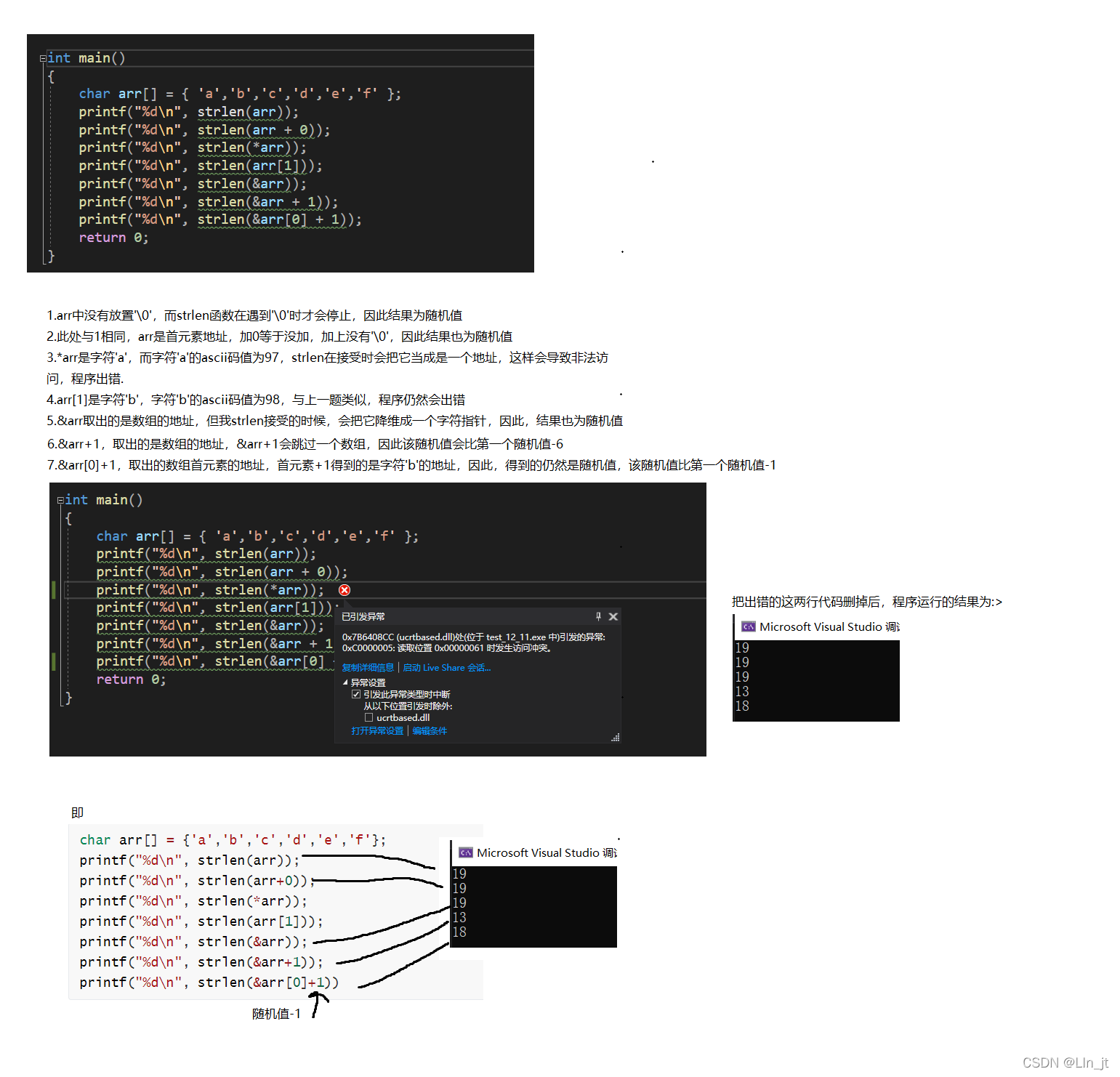 此处的字符数组arr的字符串的形式来初始化,因此在字符串的结尾会默认放一个’\0’,因此,各题的解析为:>