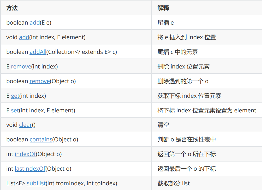 - List接口为线性表,其下有三个子类:ArrayList为动态数组,LinkedList为双向链表,Stack为栈结构