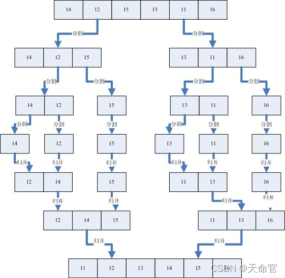 ? ? ? 归并排序(MERGE-SORT)是建立在归并操作上的一种有效的排序算法,该算法采用分治法(Divide and Conquer)的一个非常典型的应用。将以有序的子序列合并,得到完全有序的序列;即先使每个子序列有序,再使子序列段间有序。若将两个有序表合并成一个有序表,称为二路归并。