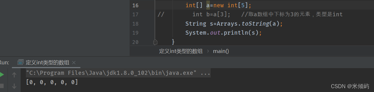 int[] a ?//定义一个元素类型是int的数组,名称是a