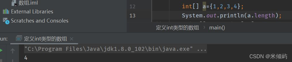 (2)为其进行初始化操作——数组中共有4个元素,对应的下标为0,1,2,3