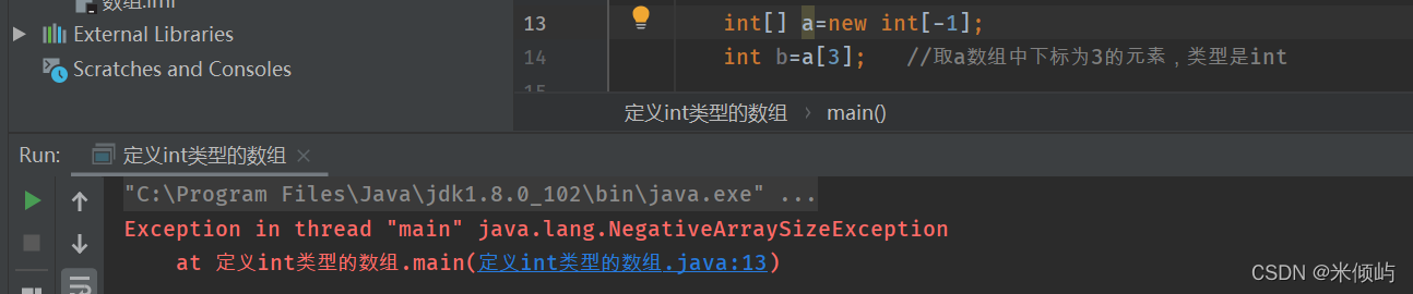 如果下标没有在合法范围内(0<=i<数组长度),会有运行时异常:
