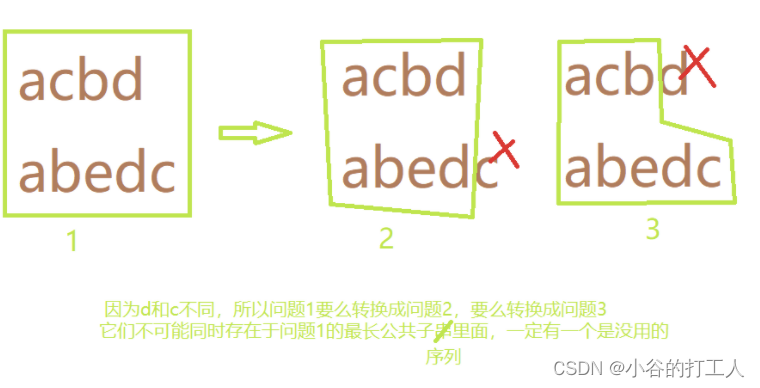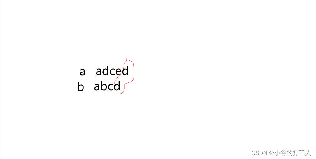 如果a[i]==b[j],f[i][j]=f[i-1][j-1]+1;如图所示,如果两个字符相等,可以直接转化成f[i-1][j-1];