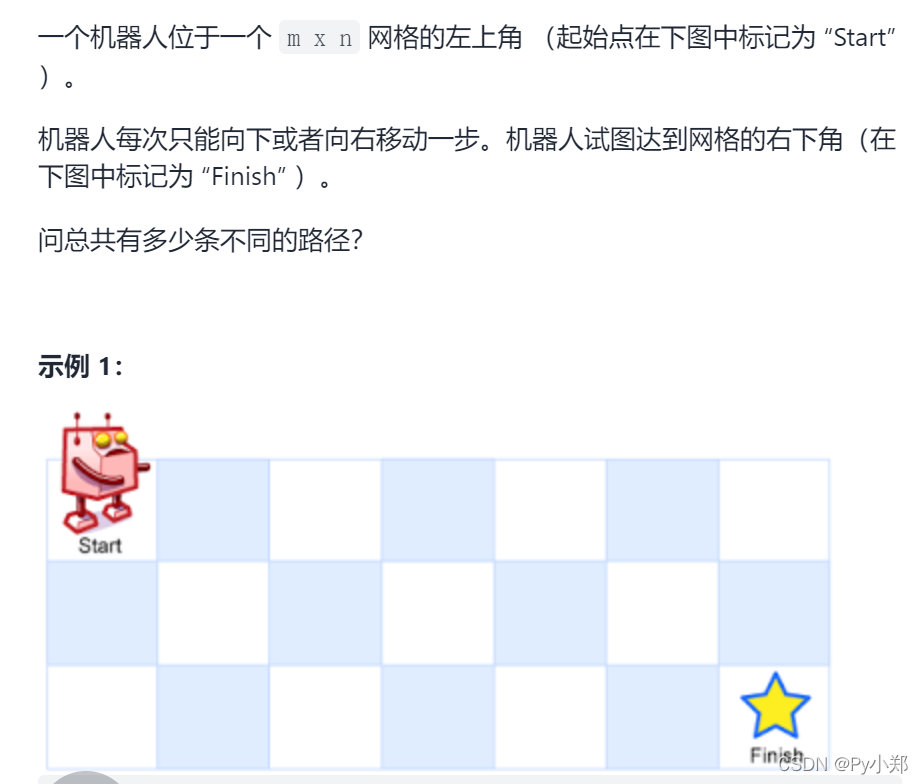 2:寻找递推关系:类似青蛙跳台阶 由于它只能向下或向右走,故除了第一列和第一行的格子外的任意个格子,都是由上面的格子或者左边的格子跳过来的,因而类比第一题,可得递推关系:dp[i][j]=dp[i-1][j]+dp[i][j-1]