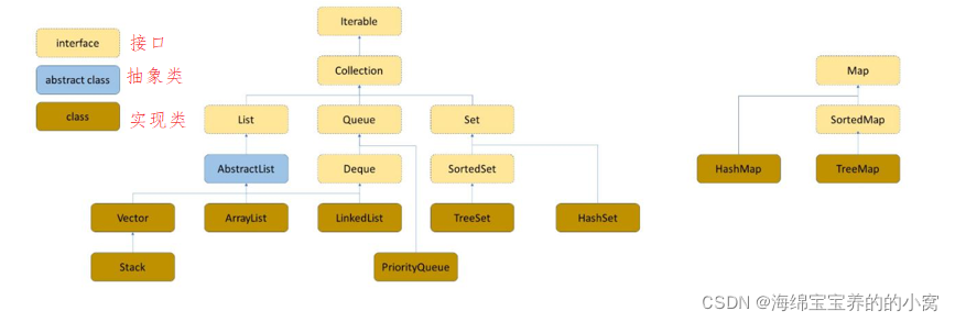 集合框架中不止这些数据结构,还提供了一些工具,例如迭代器、比较器等;