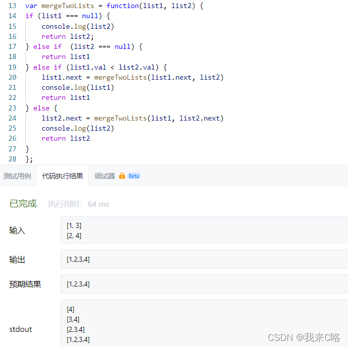 第一步 1 < 2?? ? ?? list1.next = mergeTwoLists([3], [2, 4]) return list1 = [1, 2, 3, 4]???