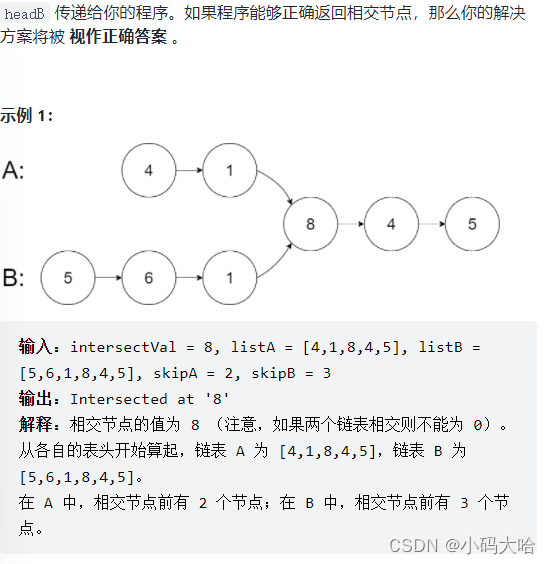 附Leetcode地址:相交链表 - 相交链表 - 力扣(LeetCode) (leetcode-cn.com)