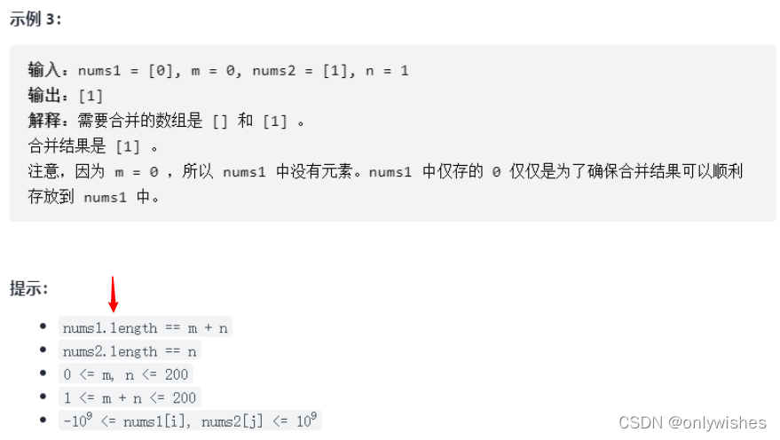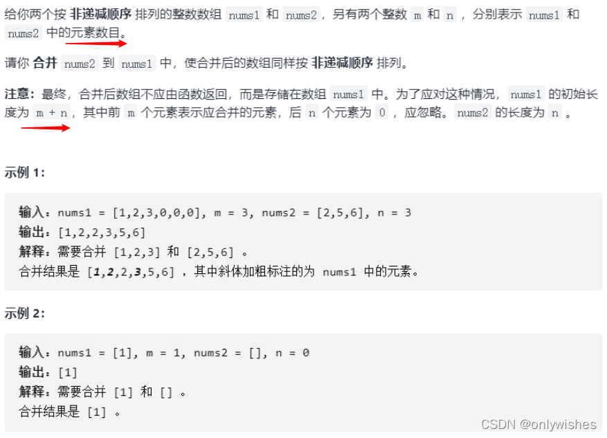 三、设置两个指针,由于1中m后面是空,可以随意赋值,就可以直接在1上进行元素的加入排序