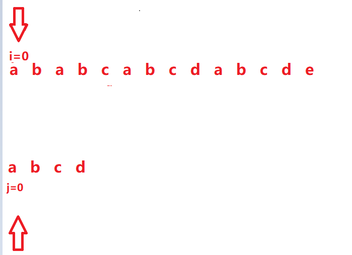 假定我们给出字符串"ababcabcdabcde"做为主串,然后给出子串"abcd",现在我们需要查找子串是否在主串中出现,出现返回主串中第一个匹配的下标,失败返回-1.