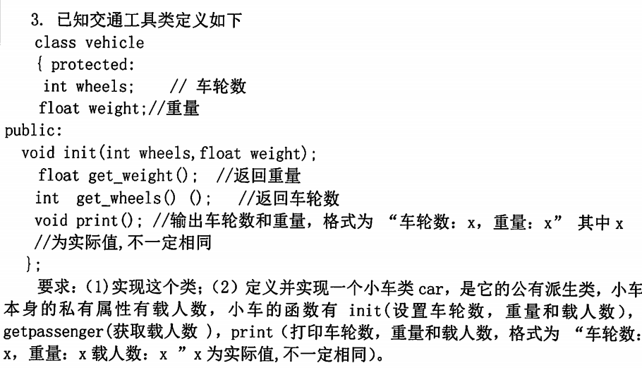cout<<"车轮数:"<<this->wheels<<"重量:"<<this->weight<<"载人数:"<<this->passenger<<endl;