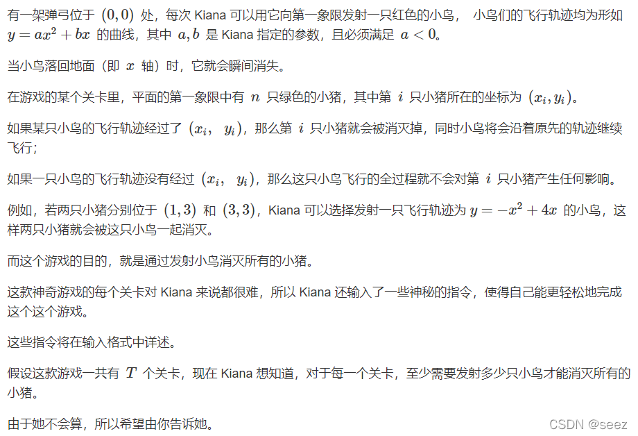 memset(p,0,sizeof p); //因为很多continue,所以p可以有上一个样例的抛物线