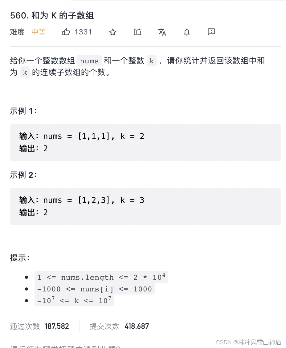 560. 和为 K 的子数组