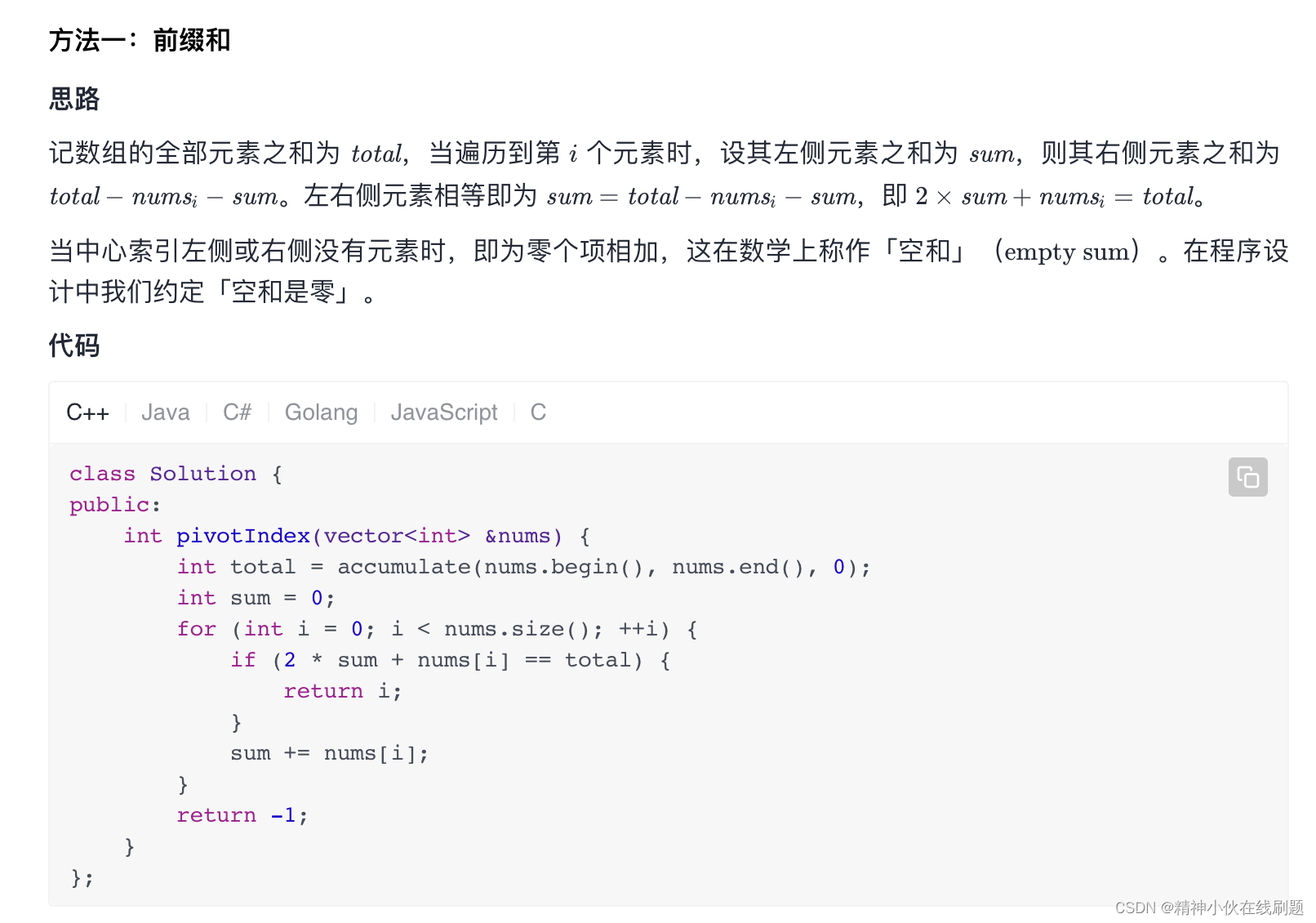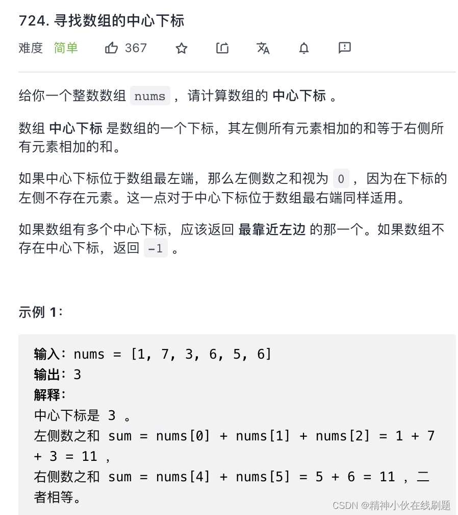 724. 寻找数组的中心下标