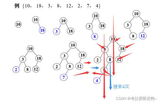 18 > 根节点,放在根节点右边;3 < 根节点,放在根节点左边;8 首先与根节点相比较,8 < 根节点,所以应该放在根节点的左边;然后 8 与 3 比较,3 < 8,8 应该放在 3 的右边,持续构建即可 -